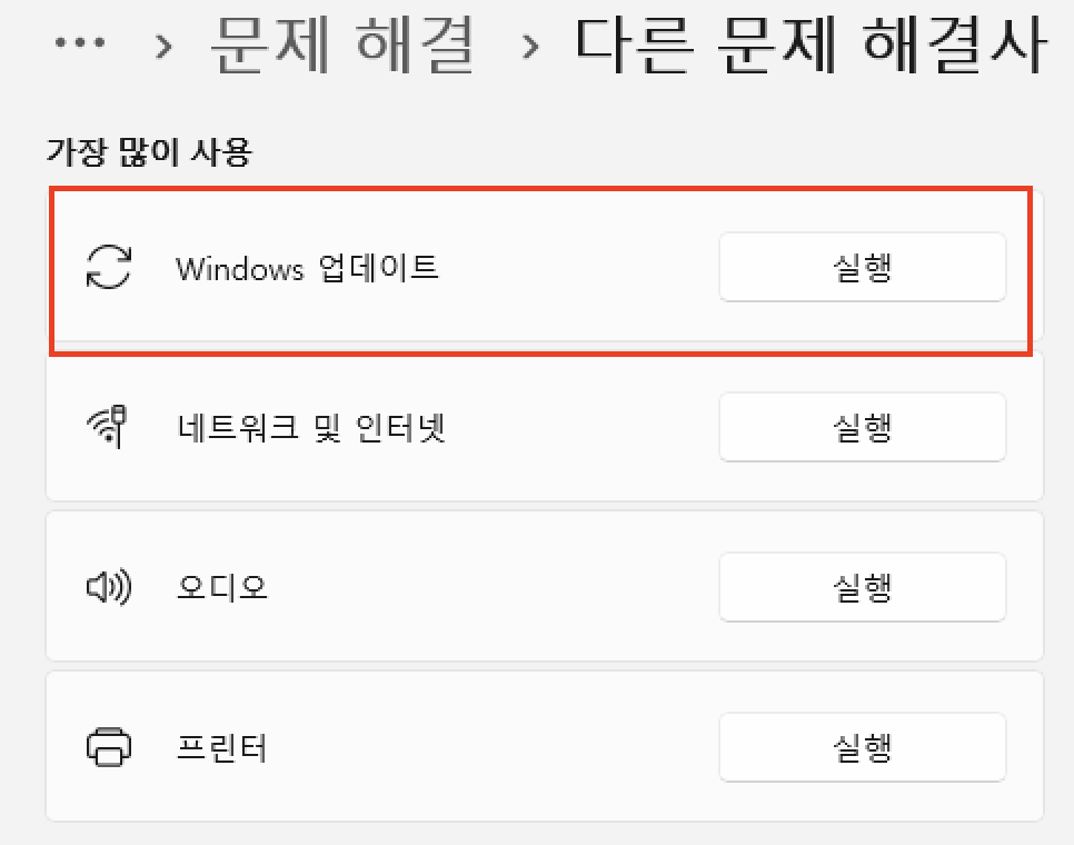 1단계: 윈도우 업데이트 문제 해결사