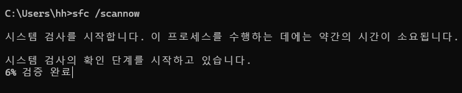 이 오류의 가장 핵심적인 해결 방법입니다. 손상된 윈도우 원본 파일과 구성 요소를 직접 복구하는 명령입니다.