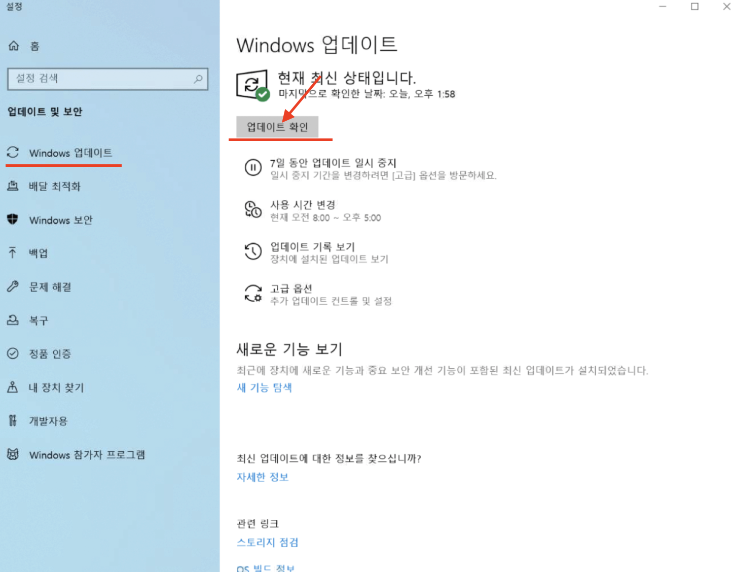 해결 방법 1: 윈도우 운영체제(OS) 최신 업데이트 (가장 확실한 방법)